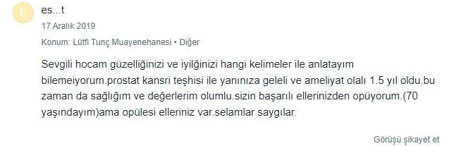 Sevgili hocam güzelliğinizi ve iyilğinizi hangi kelimeler ile anlatayım bilemeiyorum.prostat kansri teşhisi ile yanınıza geleli ve ameliyat olalı 1.5 yıl oldu.bu zaman da sağlığım ve değerlerim olumlu.sizin başarılı ellerinizden opüyorum.(70 yaşındayım)ama opülesi elleriniz var.selamlar saygılar.